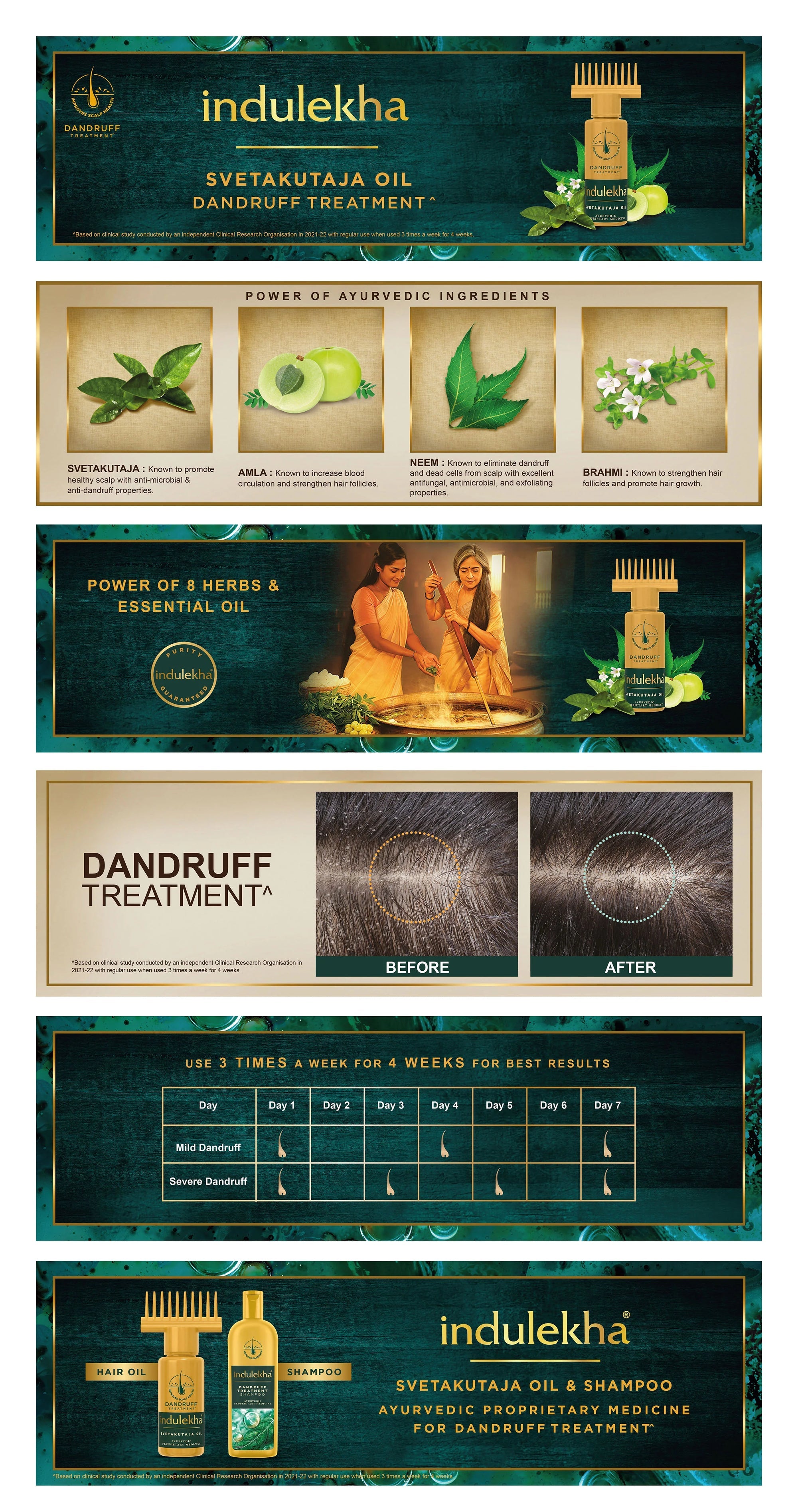 Indulekha Svetakutaja hair oil is an Ayurvedic proprietary medicine for Dandruff. It is clinically proven to Reduce Dandruff. Clinical tests have shown that when regularly used 3 times a week for a month, it visibly reduces dandruff and makes hair & scalp healthy.